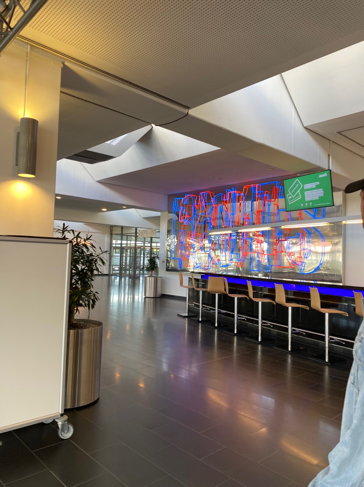 Von oben ranken Pflanzen herunter und die Ebenen verspringen, sodass man immer wieder von einem kleinen beengenden Raum in einen großen einladenden Raum tritt. Was den Erhalt dieses Gebäudes schwer macht, ist die technische Ausstattung. Eine Bibliothek brauchte vor 30 Jahren noch keine Computer-Arbeitsplätze und auch war der Raum nicht hell erleuchtet durch Neonröhren. Für eine adäquate Ausstattung müssen noch weitere Leitungen und Steckdosen und einige andere Kabel verlegt werden.