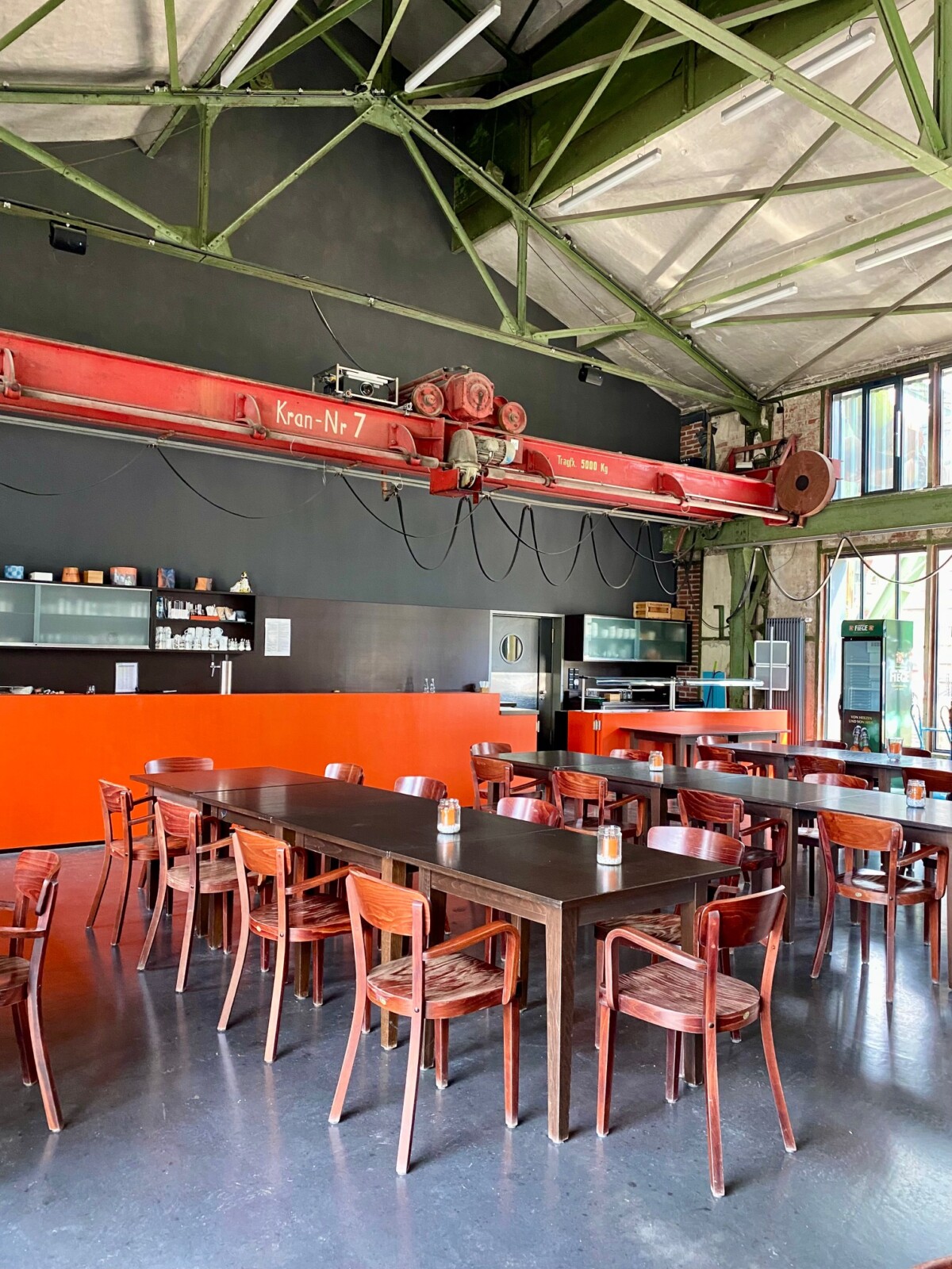 Im Innenraum wurde dann aber kaum noch etwas verändert. Über die Pumpen wurde eine Decke gezogen, sodass diese sich jetzt konserviert unter dem Gebäude befinden. Das Gebäude ist jetzt eine Mensa beziehungsweise ein Raum für Gastronomie, den man für Veranstaltungen nutzen kann.
