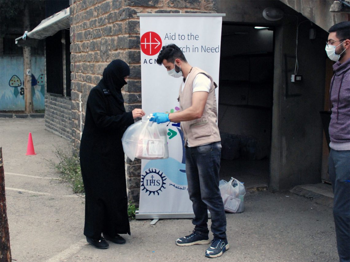 Dieses Engagement zeigt sich auch in Syrien. Im Vordergrund steht dort die pastorale wie materielle Hilfe für die christliche Minderheit. “Kirche in Not” unterstützt syrische Gemeinden, Diözesen und Klöster, damit sie die Menschen mit Lebensmitteln und Medikamenten versorgen sowie Beihilfen für Mieten, Strom und Schulgebühren leisten können. Außerdem unterstützt das Hilfswerk den Wiederaufbau zerstörter Kirche und Klöster. Zu den vielfältigen Problemen der Menschen in Syrien, speziell der Christen, kommt nun auch der Kampf gegen COVID-19. Bedürftige Menschen brauchen nicht nur Hygieneartikel, um sich gegen das Virus zu wappnen, sondern auch Lebensmittel. Dazu kommt eine starke Inflation, die auch durch einen Zusammenbruch des Bankensystems im Nachbarland Libanon verstärkt wurde. Die Gemeinden vor Ort können aufgrund der sich durch Corona zuspitzenden Situation selbst kaum mehr helfen.