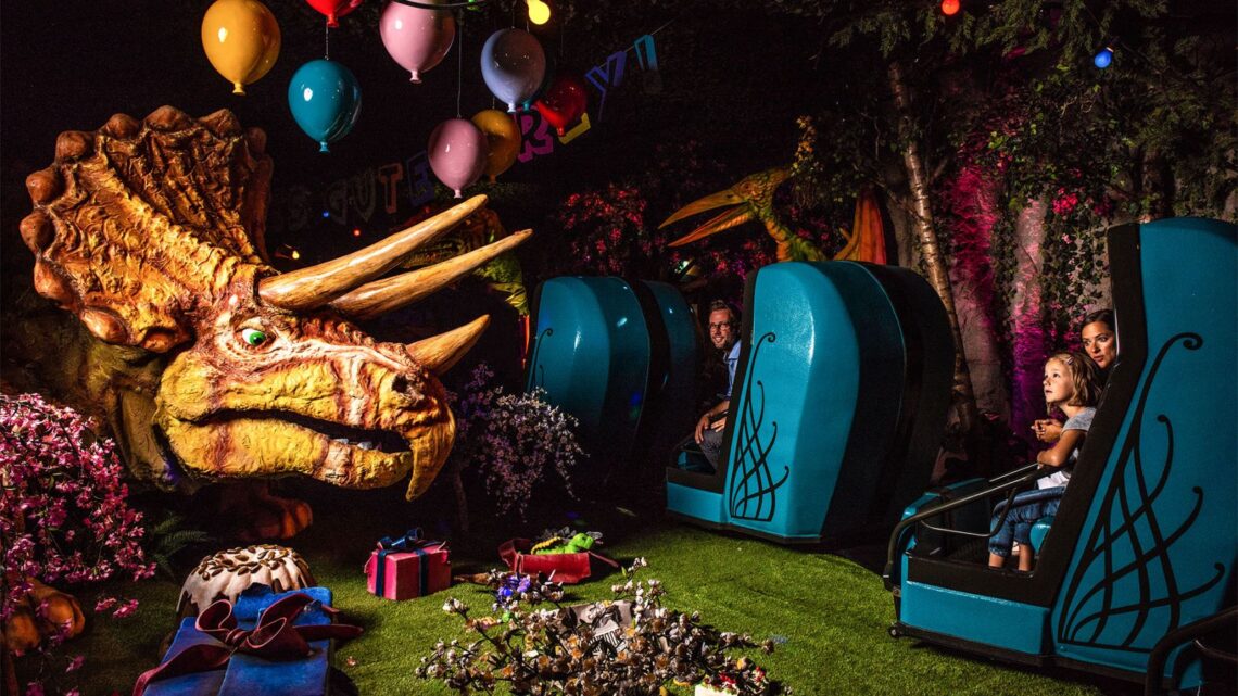 Fröhlich geht es in unseren dritten Dark Ride, bei dem uns nicht nur alte Fossilien begegnen, sondern tatsächlich lebendige Dinosaurier. Diese Art an Figuren wurde in der Vergangenheit in vielen Freizeitparks weltweit eingesetzt – auch unsere Dinosaurier im Europa-Park sind zwar nicht Millionen von Jahren, aber immerhin schon über 30 Jahre alt.