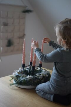 Wir lieben es, gemeinsam zu lesen und dabei Kerzen anzuzünden. Dazu sagen wir Sprüche auf. Jede darf sagen, für was sie dankbar ist (das ist grundsätzlich ein Ritual von uns, aber in der Weihnachtszeit in Verbindung mit dem Kerzen anzünden).