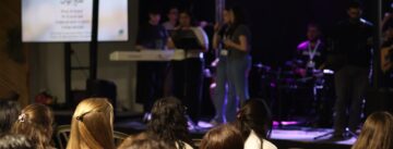 Das Zelt ist gut gefüllt, die Bühne professionell ausgestattet. Gut 150 Studenten mit arabischem, jüdischem und internationalem Hintergrund stehen in den Plastikstuhlreihen und singen gemeinsam arabische, hebräische und englische Anbetungslieder. Ich bin bewegt von den tiefgründigen Liedtexten und angenehm überrascht von den schönen Melodien und neuen Rhythmen. Auch auf der Bühne sind alle drei Gruppen vertreten. Es wurde eine vollwertige Band zusammengestellt, am ersten Abend sogar mit Geige.