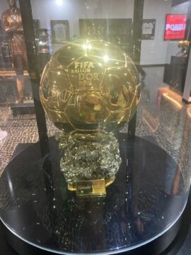 Die Auszeichnungen stammen aus der ganzen Welt und sehen super unterschiedlich aus. Auch ein bisschen Fanpost ist unter den Trophäen. Viele seiner Trikots und Fußballschuhe kann man bestaunen und eine lebensgroße Statue aus Schokolade ziert den Mittelpunkt der Ausstellung.