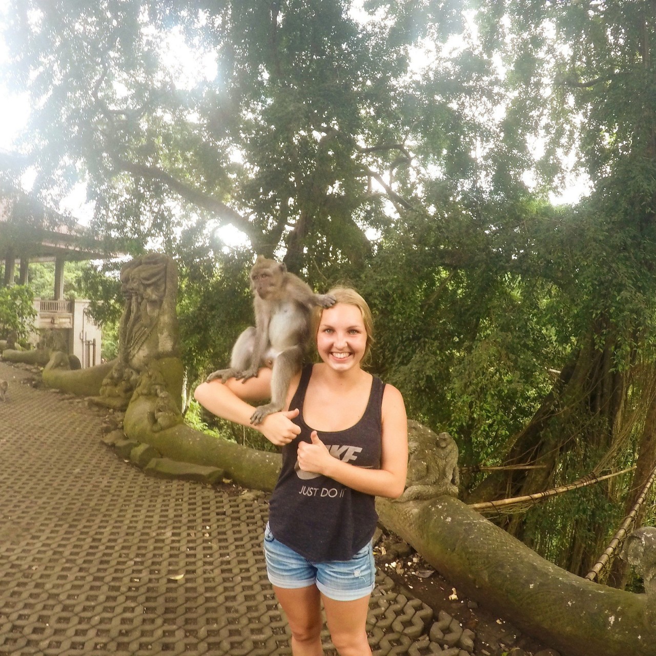 Lebend am Affenwald nahe Ubud angekommen, gaben wir alle Bananen ab, die wir hatten. Einige wurden uns auch von den Affen geklaut. Wir hatten jedoch Glück und nur nette Affen um uns herum. Viele Menschen bezeichnen die Tiere dort als aggressiv, Sie sind es aber nicht. Ich konnte einen Affen halten, habe einem sogar die Banane wieder weggenommen und kam trotzdem mit all meinen Fingern wieder aus dem Wald heraus. Der Affenwaldbesuch war also ein voller Erfolg und ist meiner Meinung nach ein Muss für den Indonesienurlaub.
